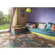 The technological characteristics of the glazed porcelain stoneware, available in five sizes, six shaded colors and numerous decorations, reinterpret South American atmospheres with modern taste.
