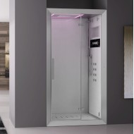 In an exclusive setting, the hidden technology and the refined aesthetics of a new way of experiencing the shower, all-encompassing, rewarding, engaging. Jacuzzi jets offer the possibility to choose different types of hydromassage. In the most equipped version it is possible to select three options: cervical and lumbar massage in which the vents massage the most stressed points of the back; Shiatsu massage, effective, deep, in the two Tonic and Relax programs; sequential massage, which allows you to select the desired speed. The Cromodream Jacuzzi allows you to choose between 6 basic shades that are diffused together with the water directly on the body. The energy of red, the brightness of yellow, the purity of white, the serenity of green, the intensity of blue can also become 4 different color cycles: real wellness programs. The frame of Frame Jacuzzi , from the sensibility of the designer Mario Ferrarini comes the attention to detail, the essential aesthetics, the choice of materials of natural inspiration, pleasant to the touch, able to make sensory experiences even more intense. A threshold to cross, in an ideal spatial continuity, to enter the vanguard of wellness. The Touch Screen Jacuzzi keyboard allows, with a simple touch of the fingers, to have access to the many functions of the shower, turkish bath and whirlpool; a single electronic control system synthesizes all the functions in a simple and intuitive control panel.