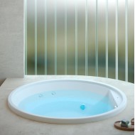 Round built-in hydromassage tub, welcoming and with small dimensions. With the TargetPro system: a completely personalized hydromassage thanks to the wide inclination of the jet which, together with the flow rate, intensity and power, can be adjusted as desired.