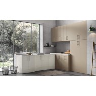 Meuble bas lave-linge 2 portes H.70 cm et socle Blanc Sablé - Poignée « Métal » H.86 x L.70 x P.65 cm • Meuble bas lavabo 2 portes H.70 + socle avec 1 étagère intérieure - Blanc Sablé avec poignée « Métal » H.86 x L.90 x P.65 cm • Meuble bas d'angle H.86 cm avec partie fixe et porte battante L.45 cm + socle Blanc Sablé avec poignée « Métal » H.86 x L.100 x P.50 cm • Bandeau de fermeture pour meuble bas Blanc Sablé H.86 x L.5 x P.50 cm • Bandeau de fermeture pour meuble bas Sable Mat A42 H.86 x L.5 x P.50 • Plan de travail en Geacryl al ML Blanc Mat avec vasque intégrée 50x30 complète avec étagère (profondeur variable supplémentaire) L.214,8 x P.65,5 x ép.1,2 cm - Base en accolée H.86 cm 2 portes battantes avec plinthe Sable Opaque A42 avec poignée « Métal » H.86 x L.50 x P.50 cm - Plateau en Mélamine Sablé Blanc de ML L.155 x P.50,5 x ép.6 cm - Demi-colonne H.90 cm 2 portes battantes avec 2 étagères Sable Opaque A42 avec poignée « Métal » H.90 x L.50 x P.36,5 cm - Bande de fermeture pour demi-colonne Sable Opaque A42 H.90 x L.5 x P.36,5 cm - Colonne 2 portes H.160+90 cm Sable Opaque A42 avec 5 étagères mélaminé - Poignée Métal H.250 x L.50 x P.36,5 cm