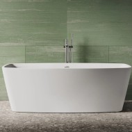 Vasca in acrilico Bianco Lucido con troppo pieno, piletta click-clack cromata, sifone e piedini regolabili inclusi. Rubinetteria Esclusa. Installazione a centro parete, versione unica. Contattaci per ricevere un offerta personalizzata