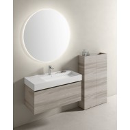Base Lavabo L.101 cm 1 cassettone H.45 cm SB3 Sablè Grigio con maniglia Clip Brill e sifone salvaspazio Geberit incluso - Consolle LIRA in ceramica Bianco Lucido in appoggio L.101 cm con vasca a DX - Specchiera Filo lucido retroilluminata a Led Ø105 cm - Mezza Colonna H.115 x L.70 cm 2 ante battenti SB3 Sablè Grigio